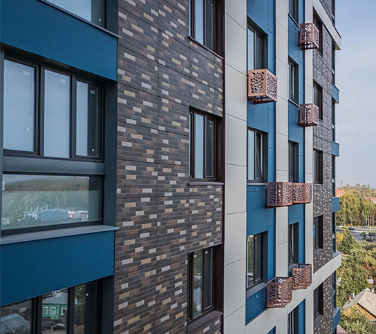 Архитектура ЖК отличается вниманием к деталям, чётким визуальным ритмом и элегантной сдержанностью. Фасады зданий оформлены в спокойных тонах, а контрастные акценты придают зданиям особый шарм.