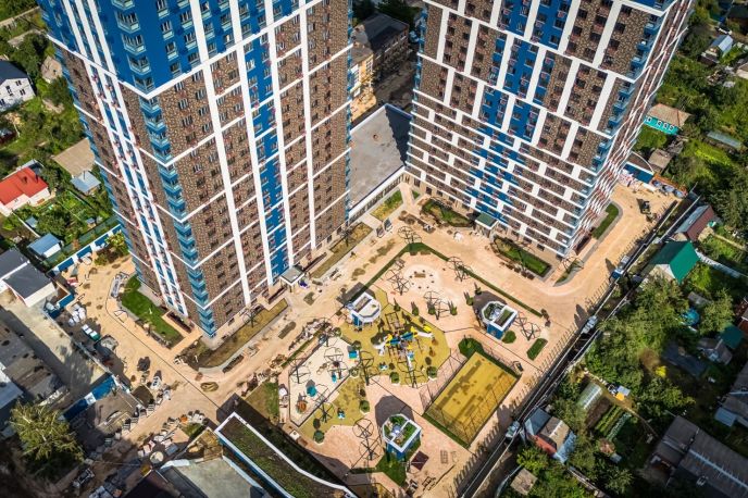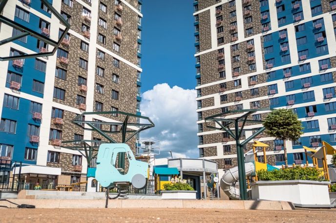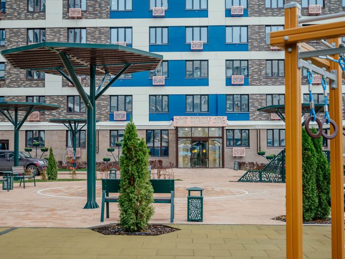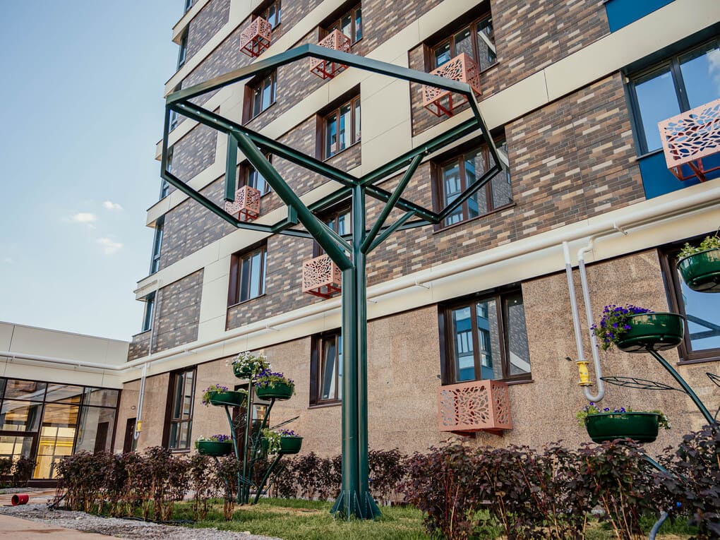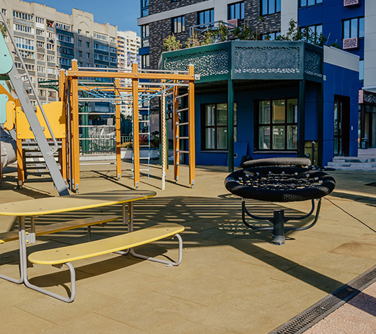 Территория разделена на различные зоны, позволяющие каждому жильцу найти занятие по вкусу. Пока дети веселятся на игровой площадке, родители могут отдохнуть или поработать в тихом зелёном уголке.