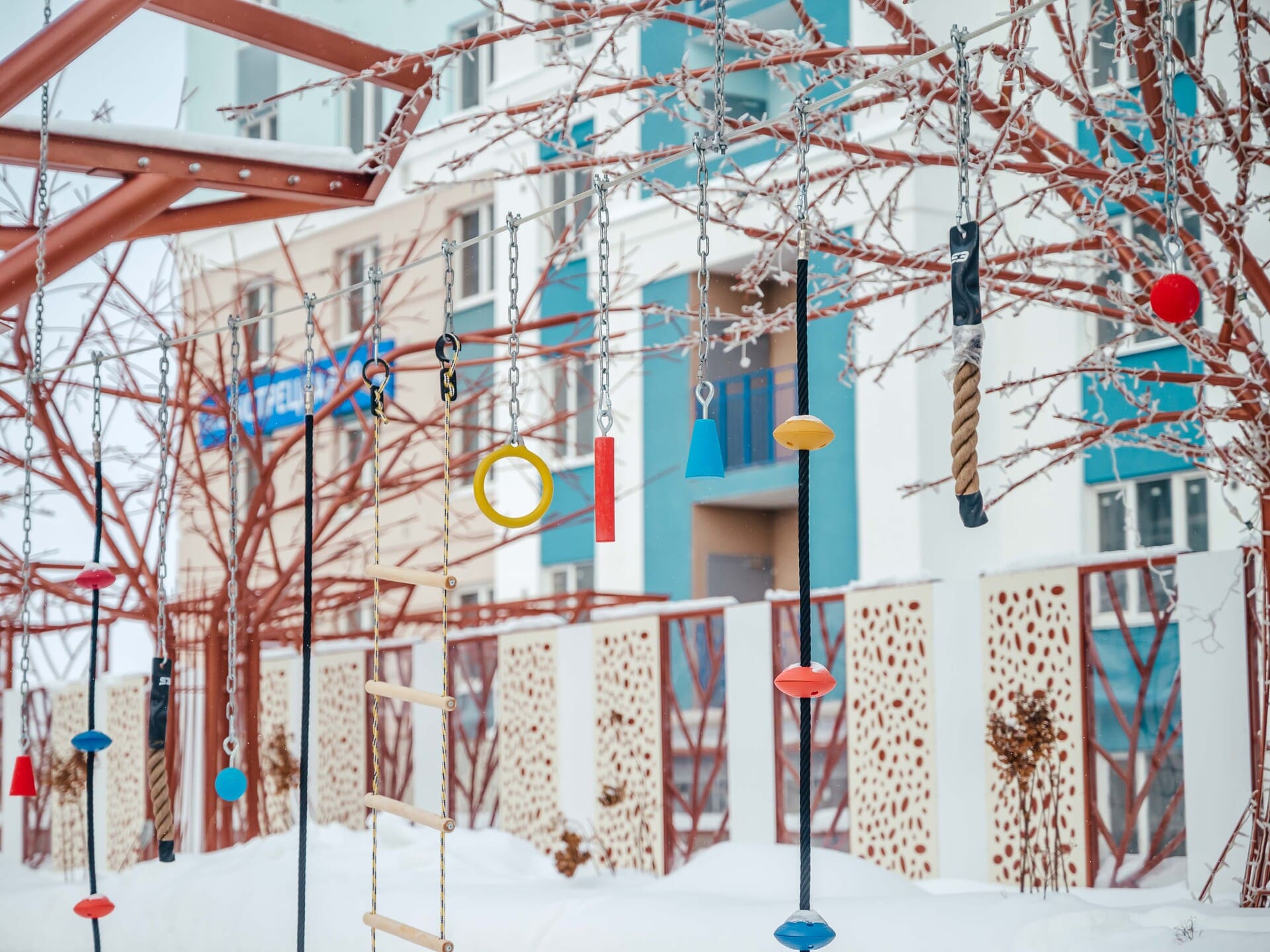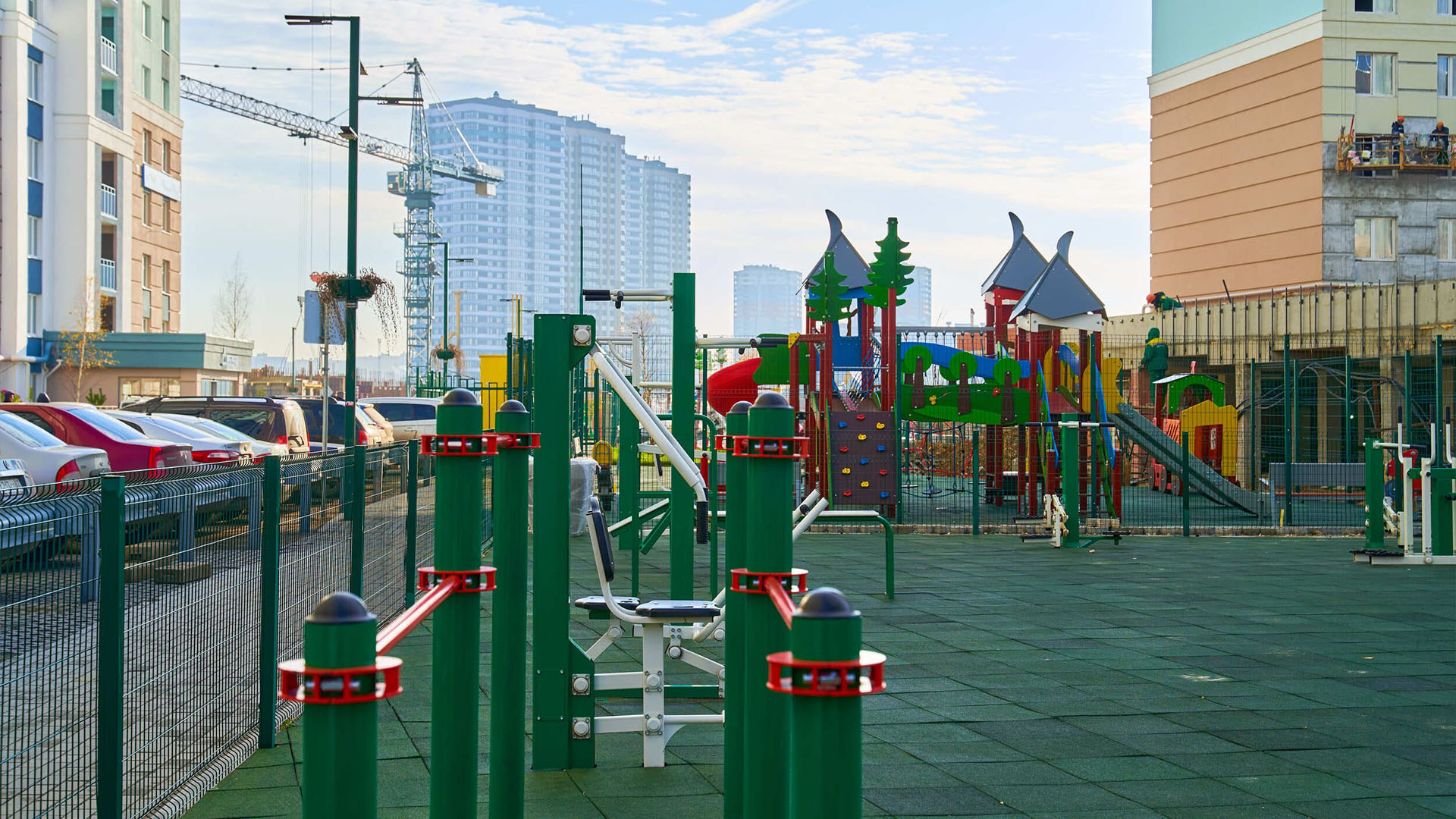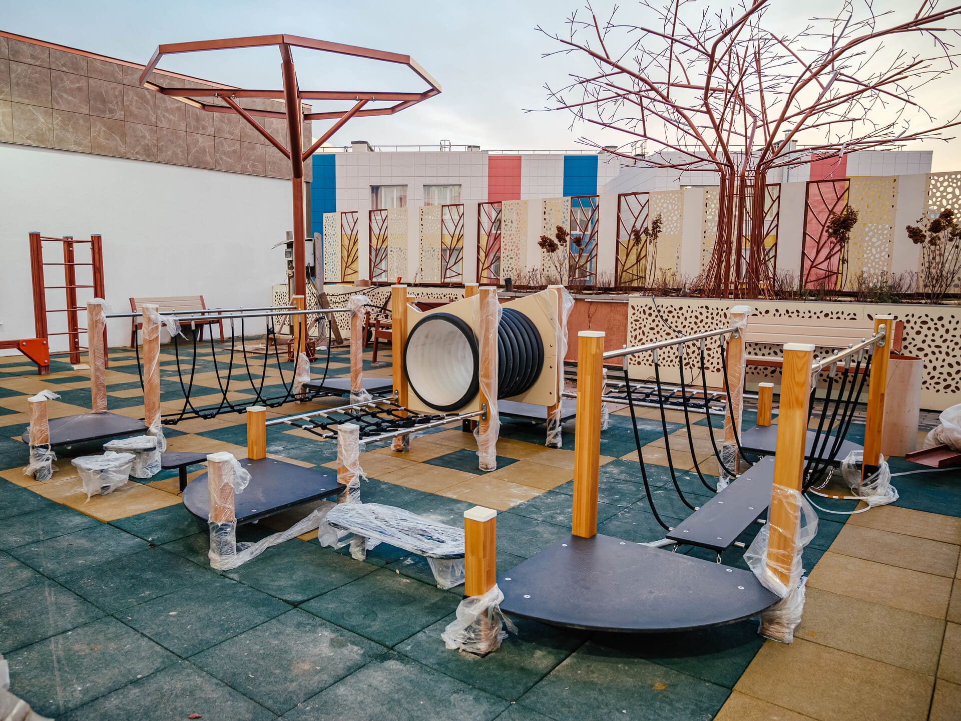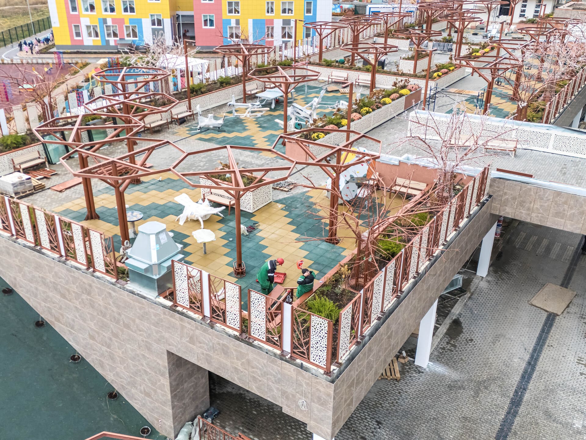 Кроме парково-садовой зоны, созданной ландшафтными дизайнерами, здесь спроектированы площадки для разных активностей. Дети, взрослые и пожилые люди могут отдыхать, не мешая друг другу, играть, общаться и работать прямо на свежем воздухе.