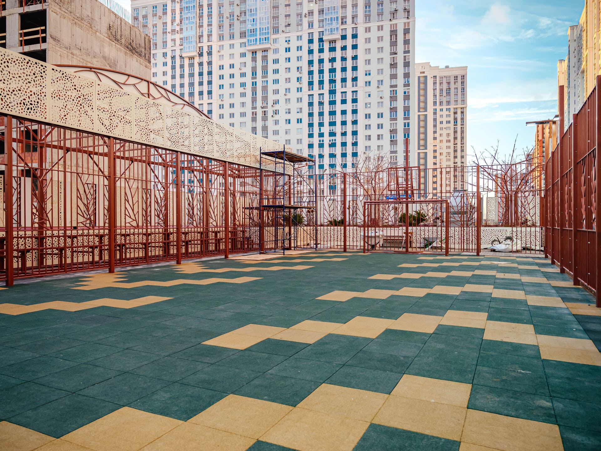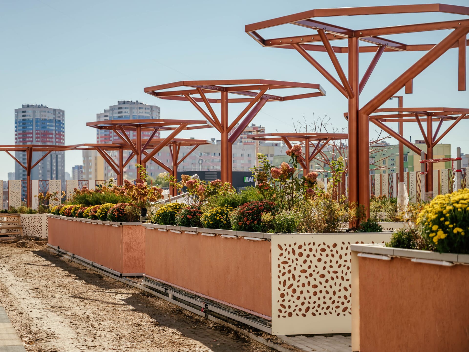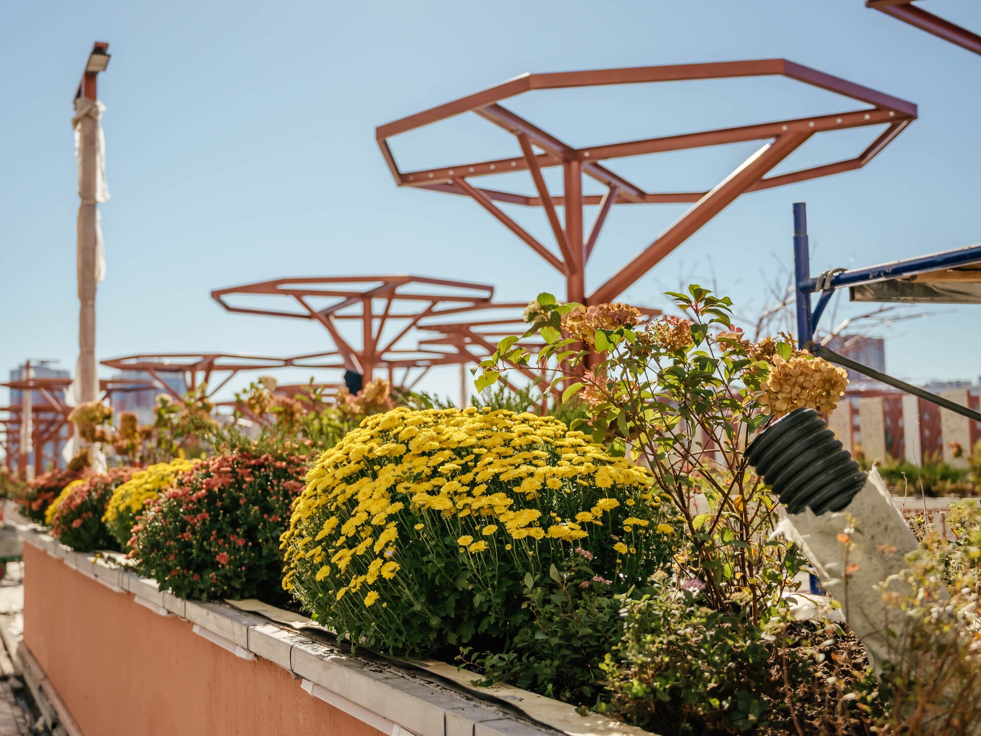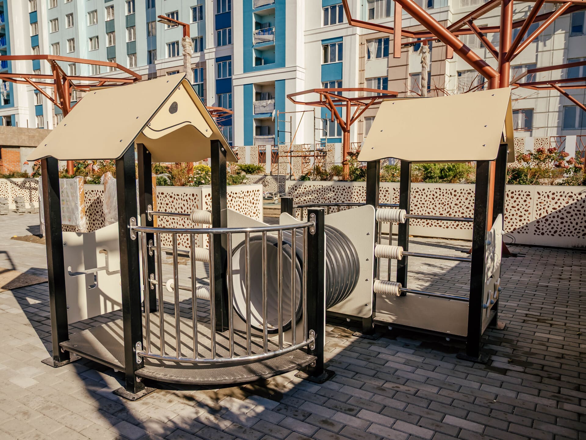 Кроме парково-садовой зоны, созданной ландшафтными дизайнерами, здесь спроектированы площадки для разных активностей. Дети, взрослые и пожилые люди могут отдыхать, не мешая друг другу, играть, общаться и работать прямо на свежем воздухе.