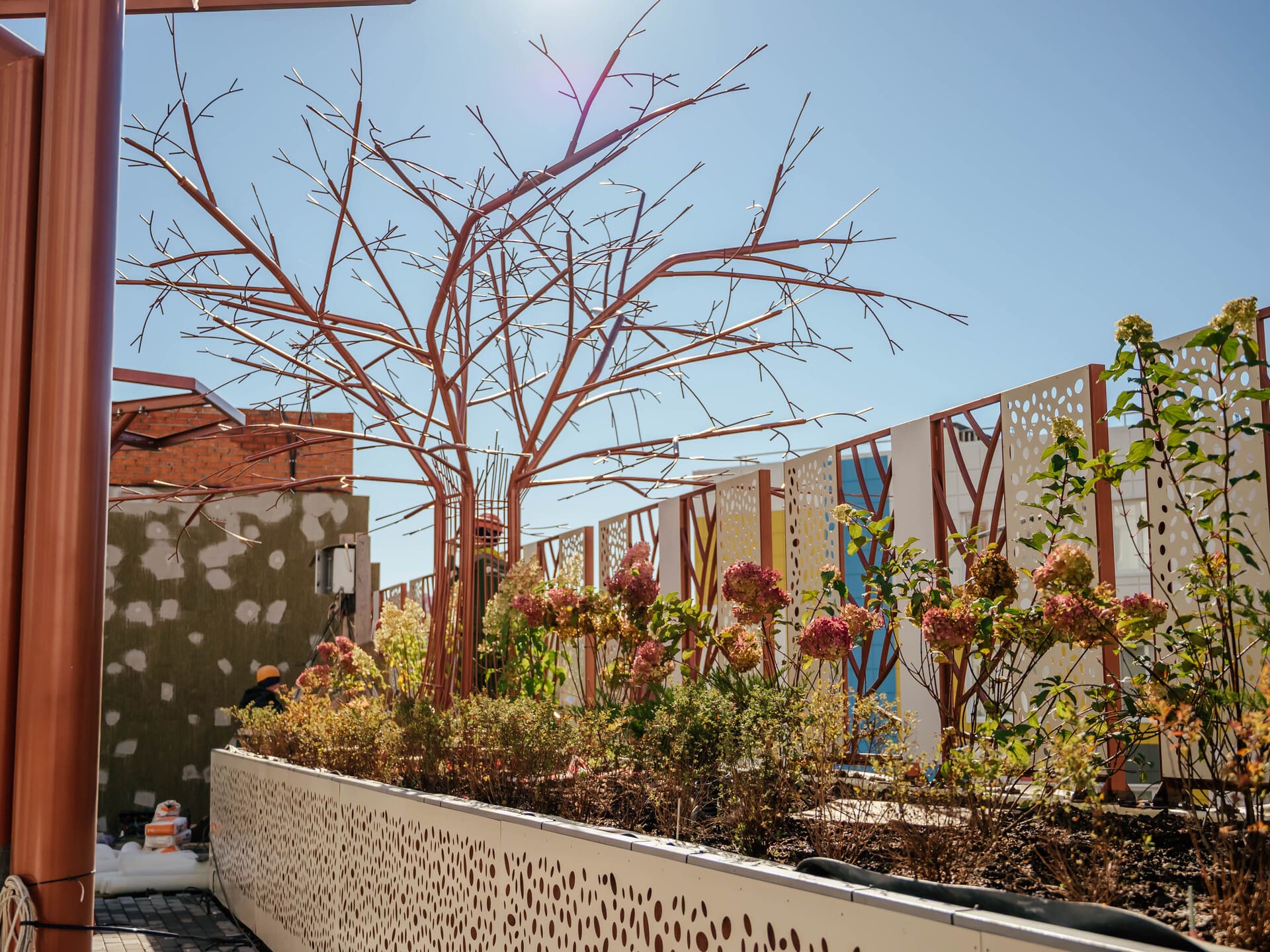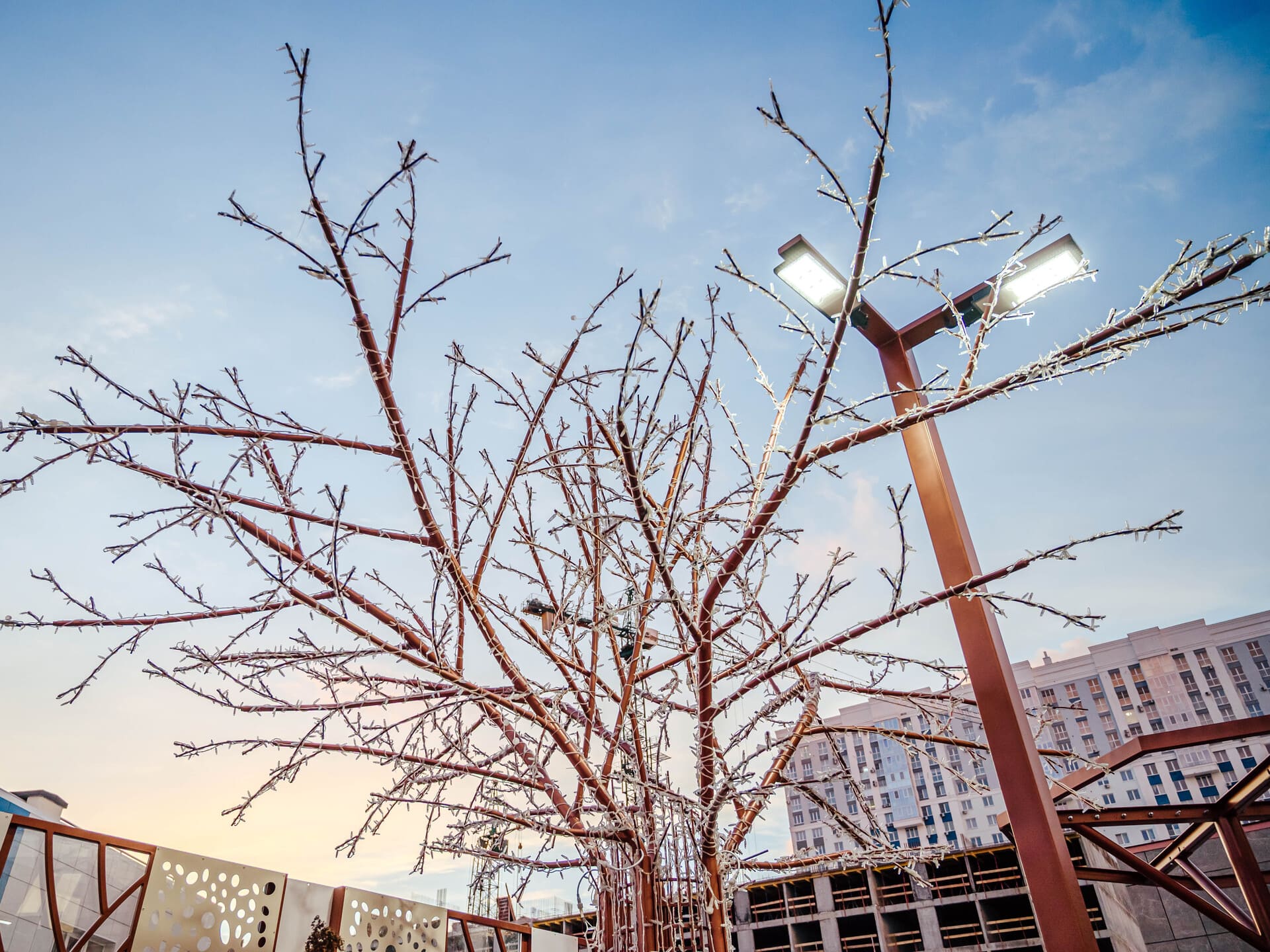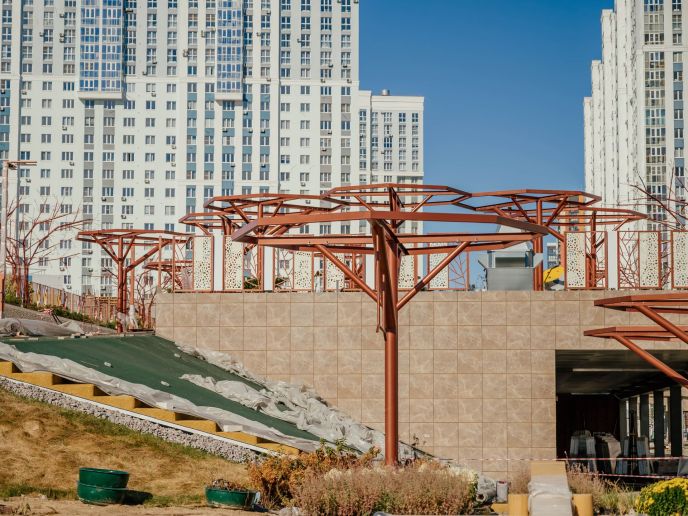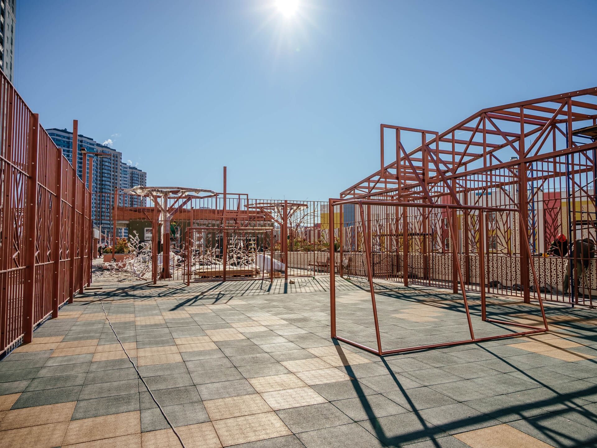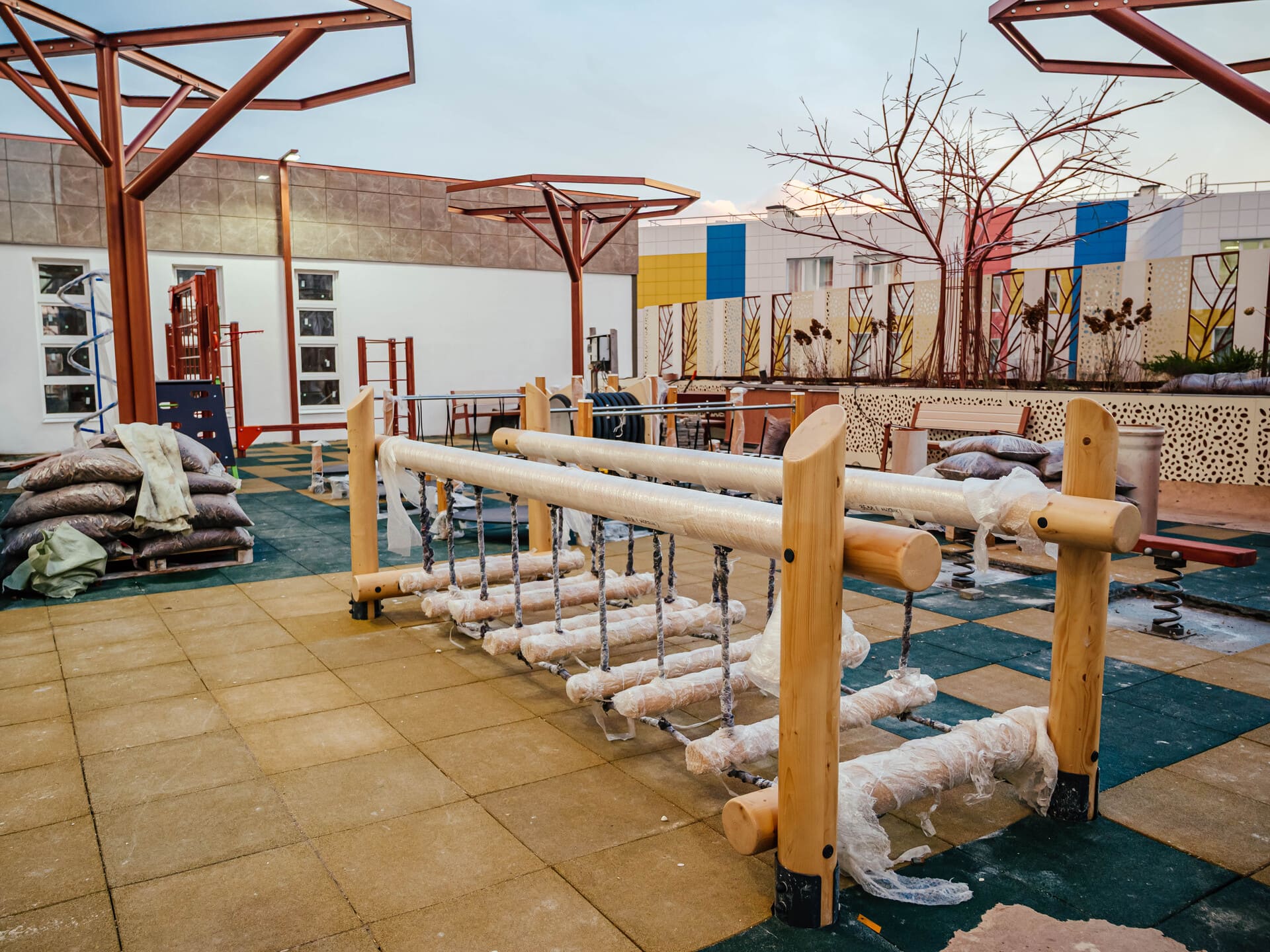 Кроме парково-садовой зоны, созданной ландшафтными дизайнерами, здесь спроектированы площадки для разных активностей. Дети, взрослые и пожилые люди могут отдыхать, не мешая друг другу, играть, общаться и работать прямо на свежем воздухе.