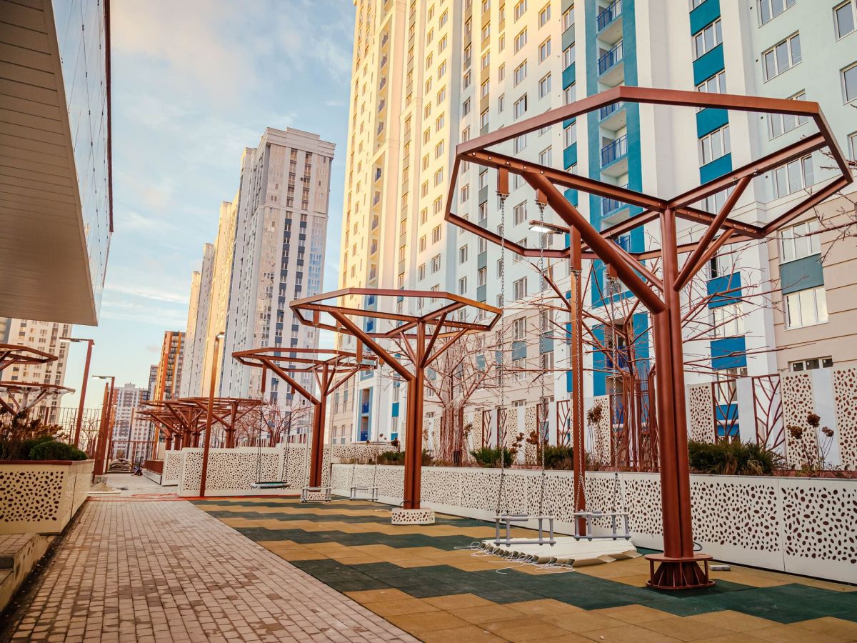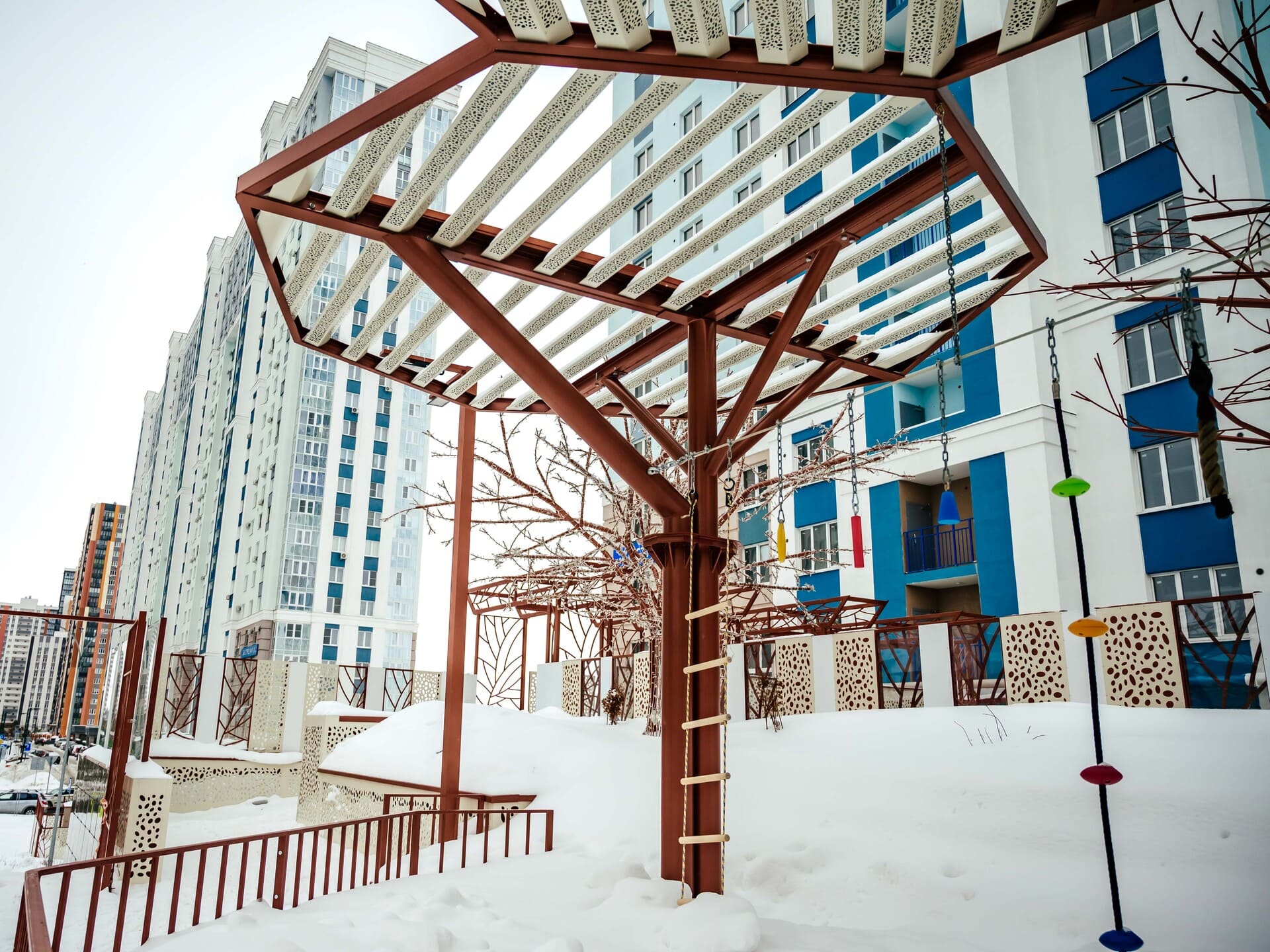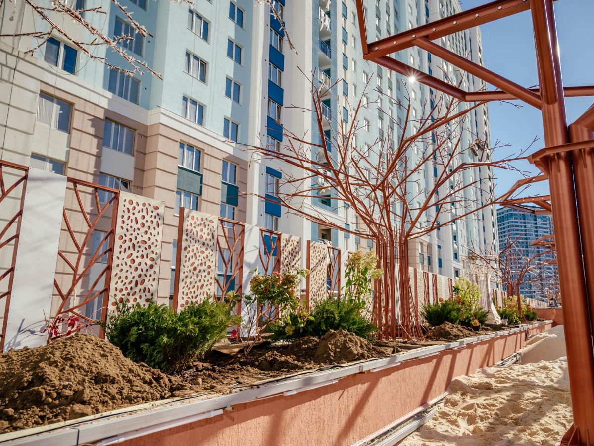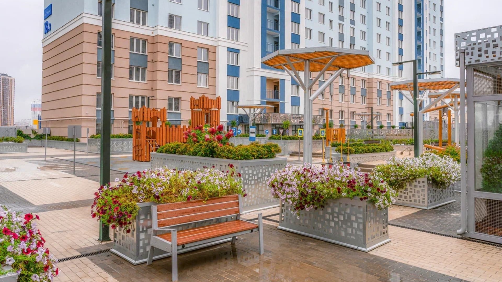 В каждом проекте мы тщательно планируем общественные зоны: зелёные дворы-парки, патио для отдыха и работы, площадки для спорта и детских игр. Это прекрасно устроенные по европейским стандартам общие пространства: большое количество зелени, различных мест для досуга.