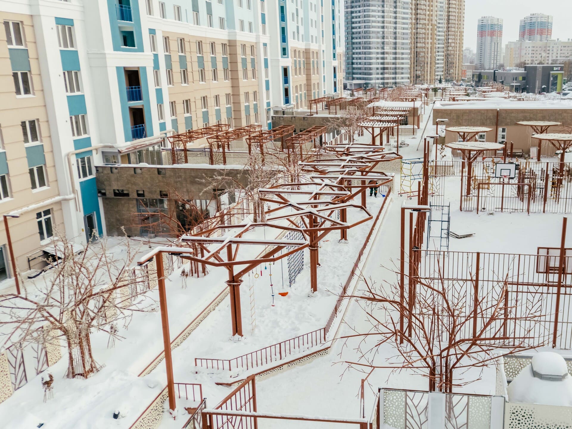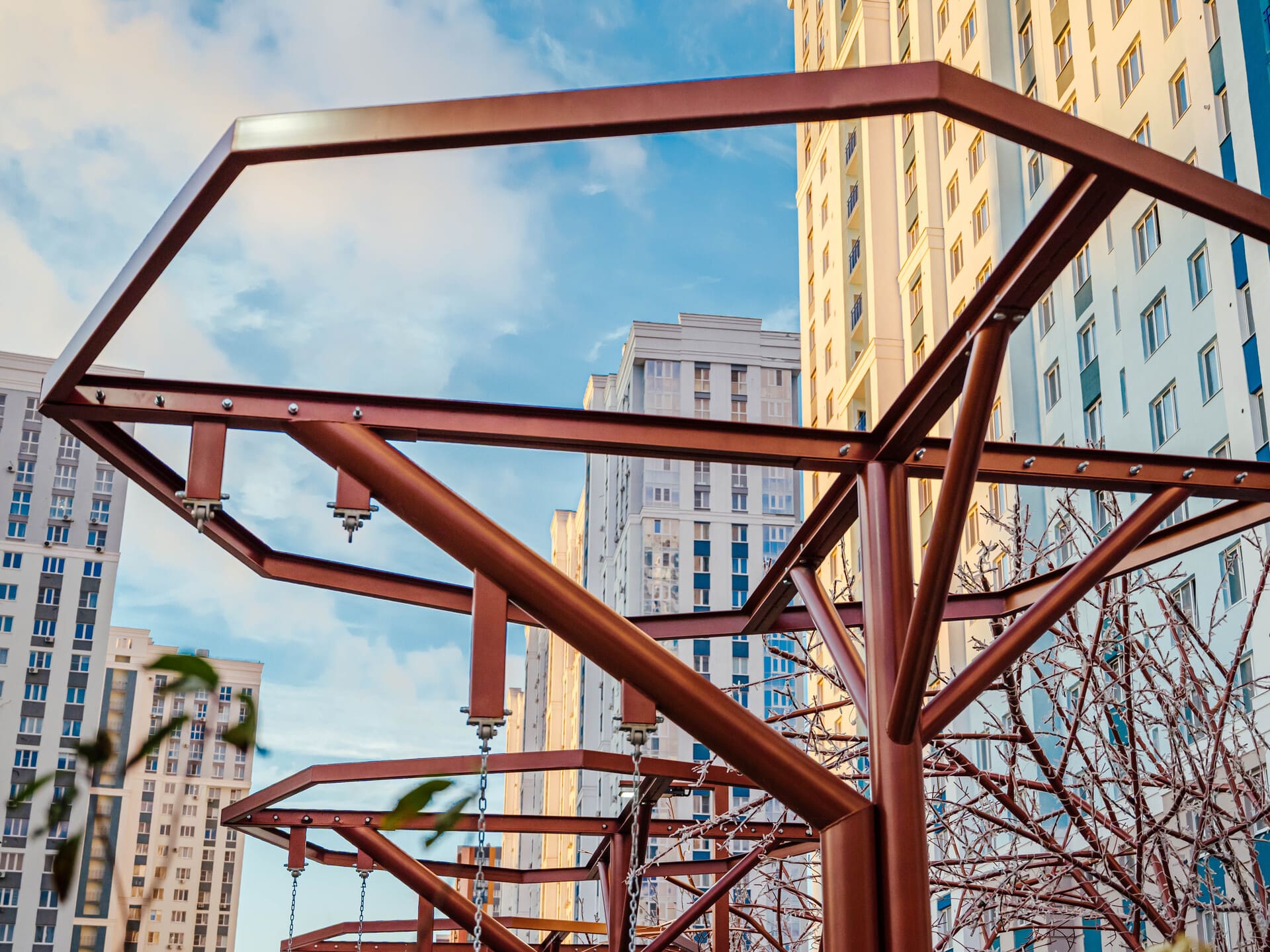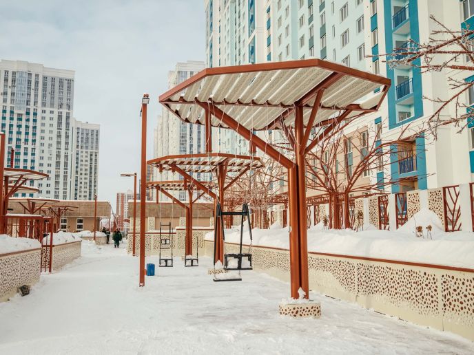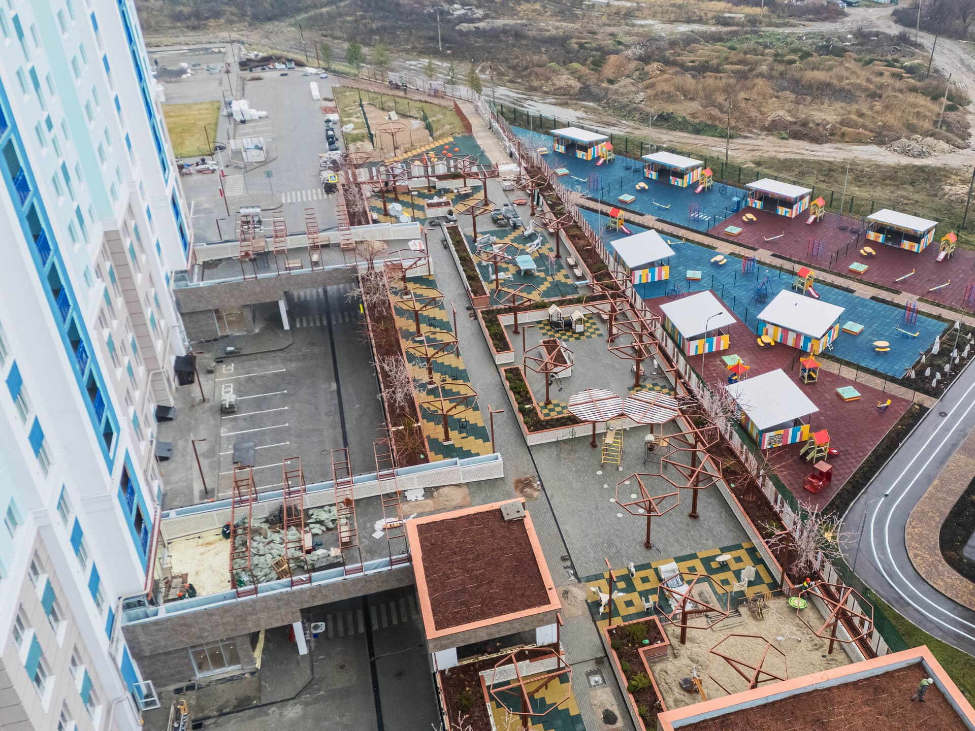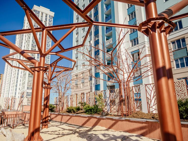 В каждом проекте мы тщательно планируем общественные зоны: зелёные дворы-парки, патио для отдыха и работы, площадки для спорта и детских игр. Это прекрасно устроенные по европейским стандартам общие пространства: большое количество зелени, различных мест для досуга.