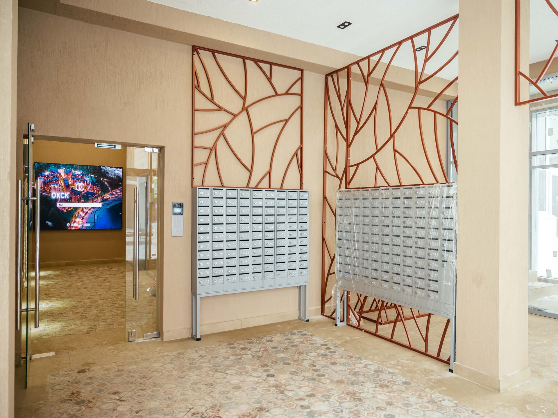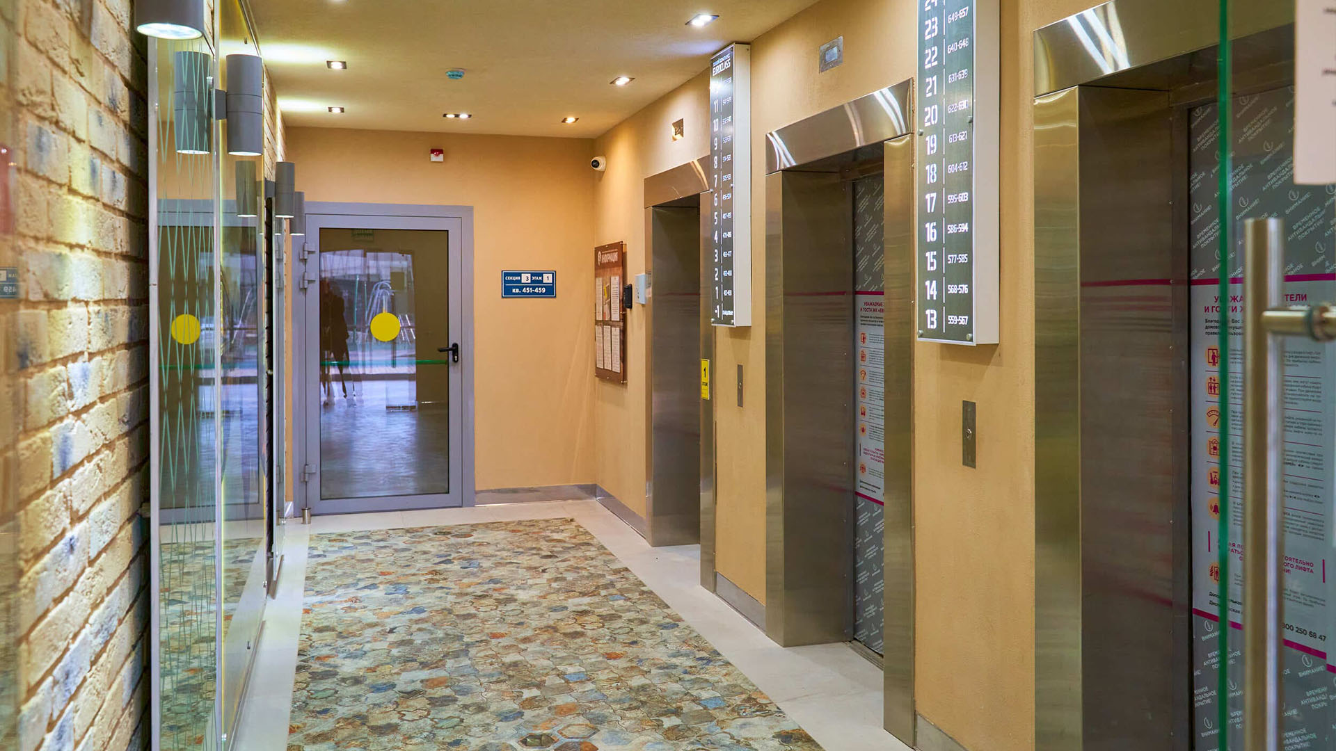 В декоре входных групп и мест общего пользования предусмотрено стильное сочетание материалов: керамического гранита и нержавеющей стали. Холлы украшены панно с изображениями городов.