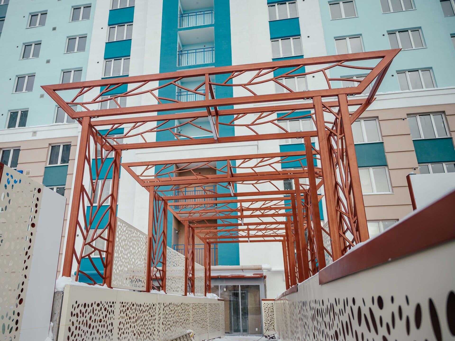 Театр начинается с вешалки, а дом – с входной группы. Именно поэтому «Зелёный сад» разрабатывает для каждого жилого комплекса индивидуальный дизайн-проект, сочетая красоту и функциональность.