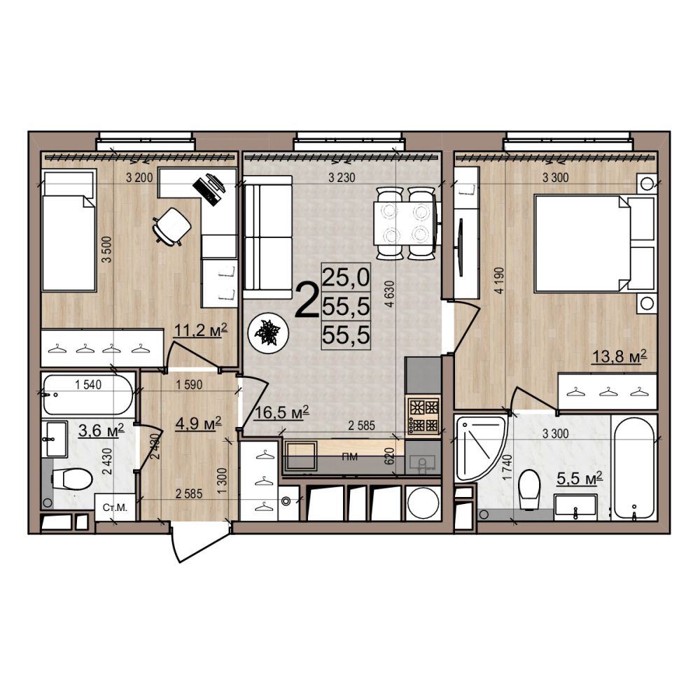 2 -комнатная 65.6 м2 8 396 800 ₽