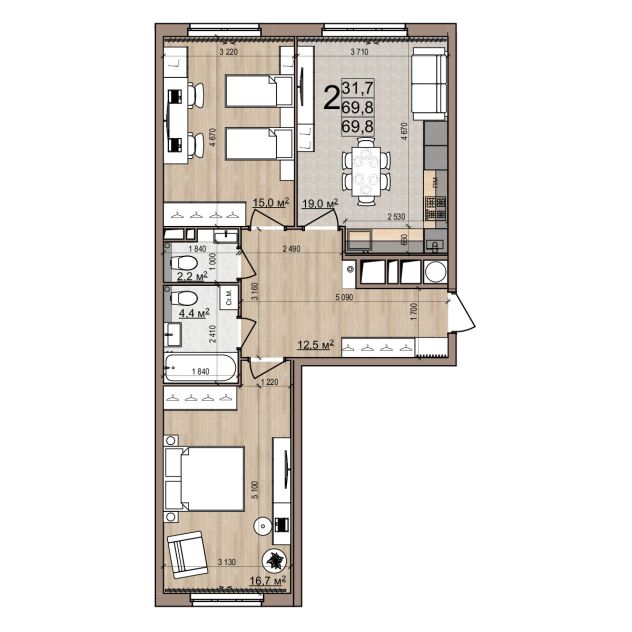 2 -комнатная 70.1 м2 8 306 850 ₽