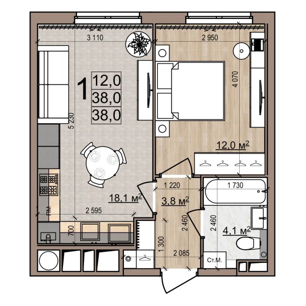 38 м2
