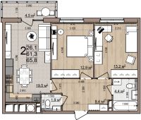 2 -комнатная 65.6 м2 8 396 800 ₽