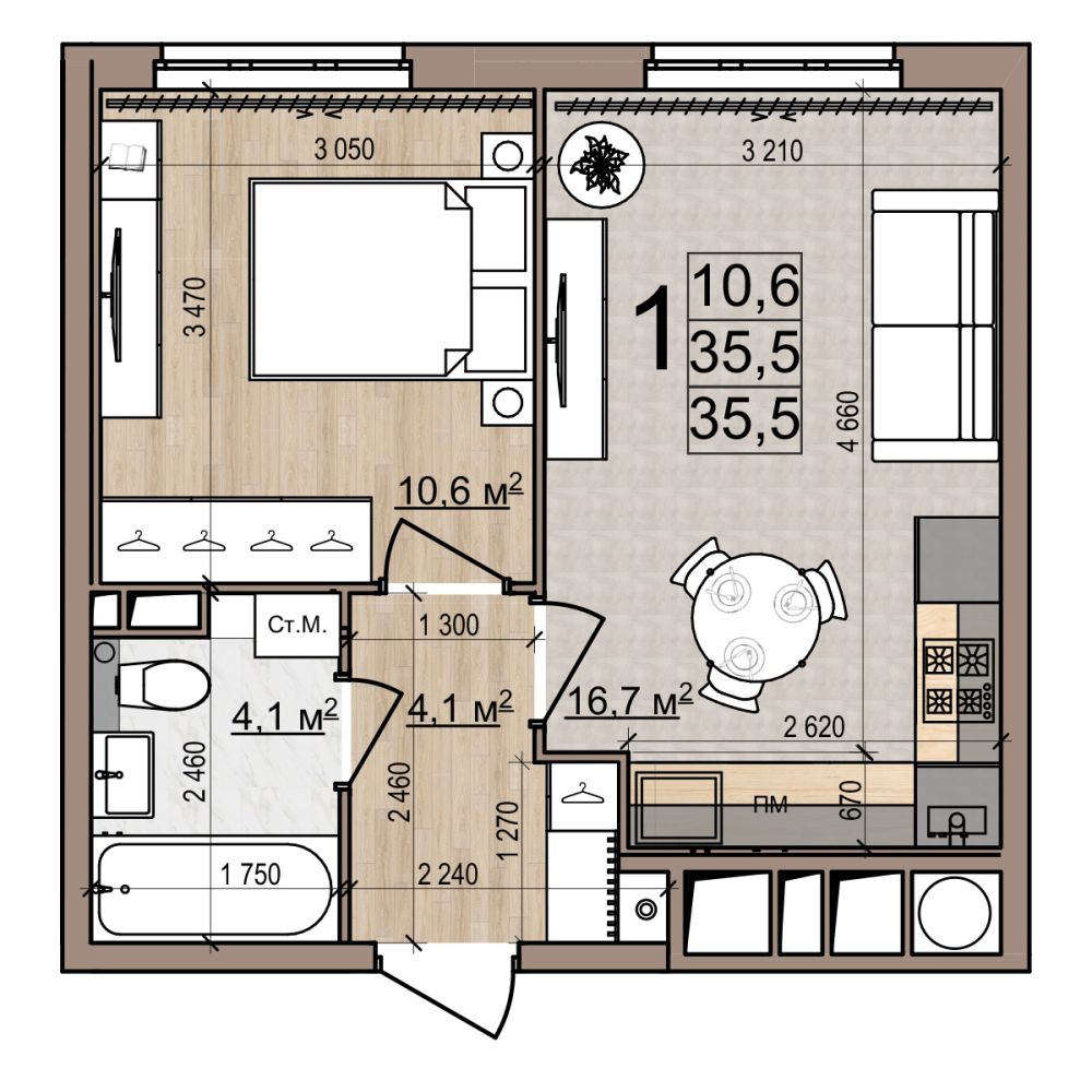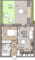 1 -комнатная 35.4 м2 5 557 800 ₽