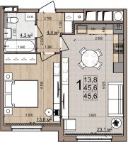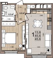 1 -комнатная 45.6 м2 6 110 400 ₽