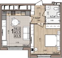 1 -комнатная 43.5 м2 5 742 000 ₽