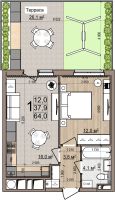 1 -комнатная 64 м2 6 809 300 ₽