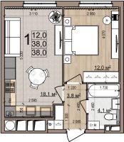 1 -комнатная 38 м2 5 776 000 ₽