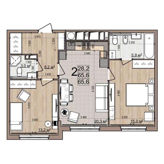2 -комнатная 65.6 м2 8 396 800 ₽