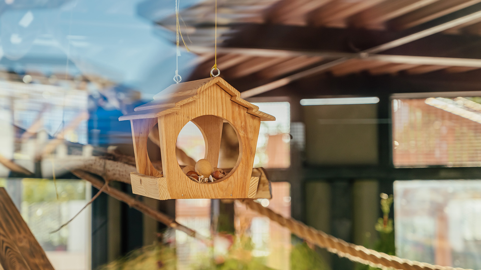 Центр притяжения двора - бельчатник. Здесь установлены домики, верёвочные лестницы и кормушки для рыжих зверьков. В этих шикарных апартаментах живут уже несколько пар белочек. За ними ухаживают специалисты УЖК «Зелёный сад - мой дом».