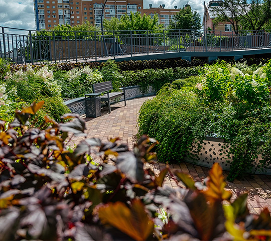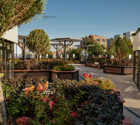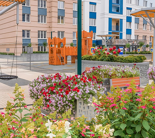 Во всех домах ГК «Зеленый сад – наш дом» предусмотрено премиум-озеленение — настоящий оазис в городе. Идеально для прогулок с малышами: меньше каменных джунглей, больше природы. Для каждого жилого комплекса дизайнеры разрабатывают уникальный ландшафтный проект.