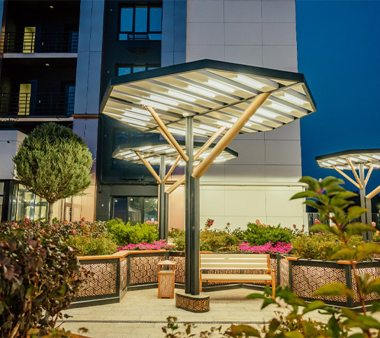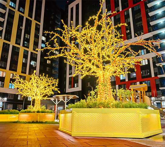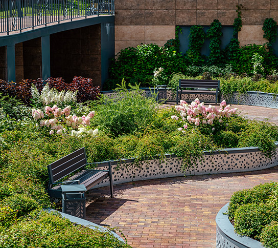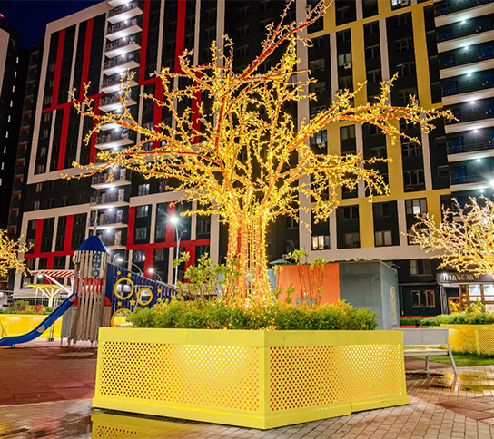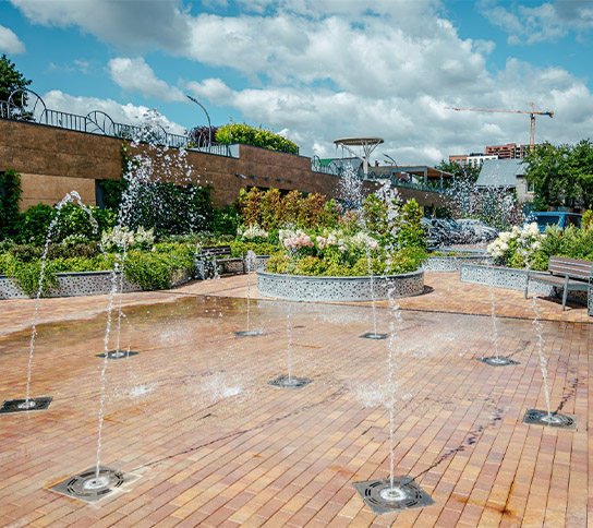 «Зеленый сад - Мой дом» бережно заботится о растениях в течение всего года. Фонтаны дарят прохладу в жаркие дни, а вечером создают уютную атмосферу благодаря подсветке. Более 20 видов растений радуют жителей своими неповторимыми ароматами и яркими красками.
