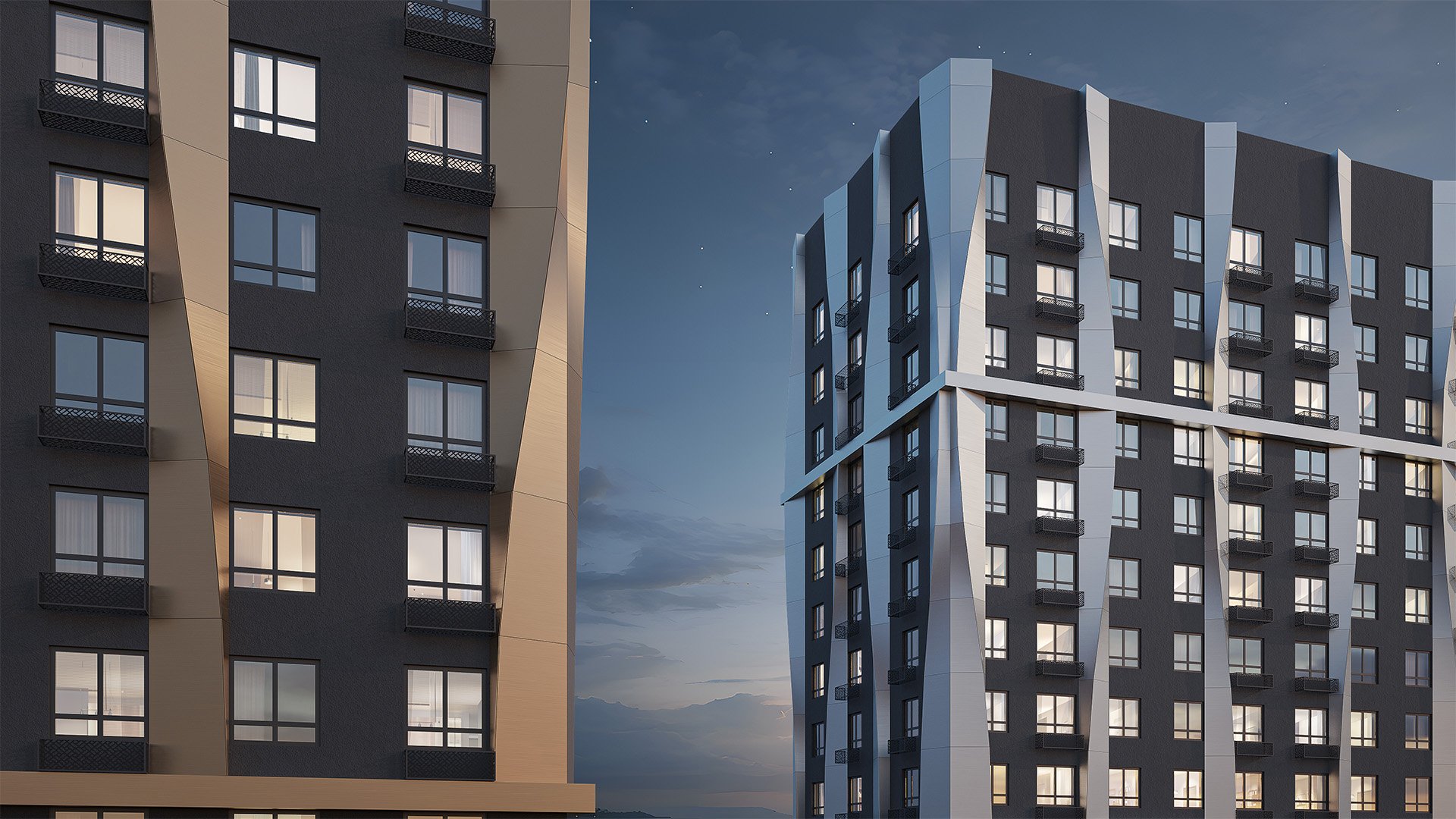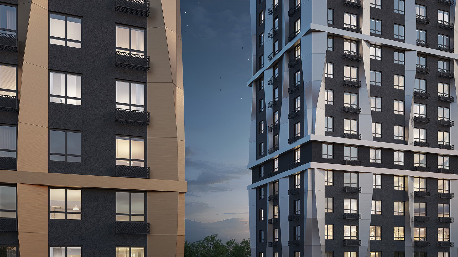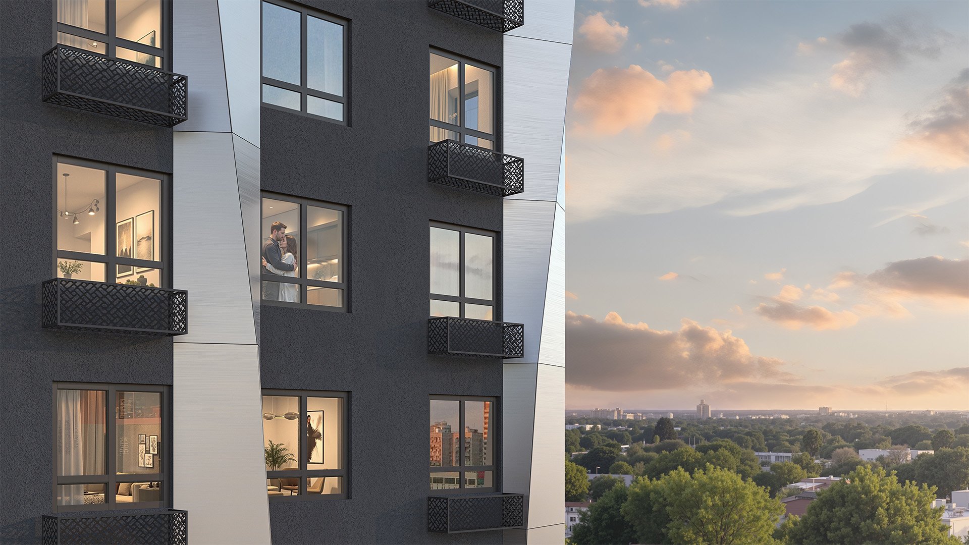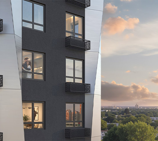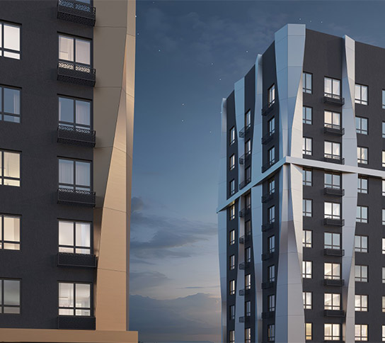 Фасад жилого комплекса «Моя мечта» сочетает современную архитектуру и энергоэффективные технологии. Декоративные алюминиевые композитные панели придают дому стильный и аккуратный облик, который сохраняет свою привлекательность на долгие годы.