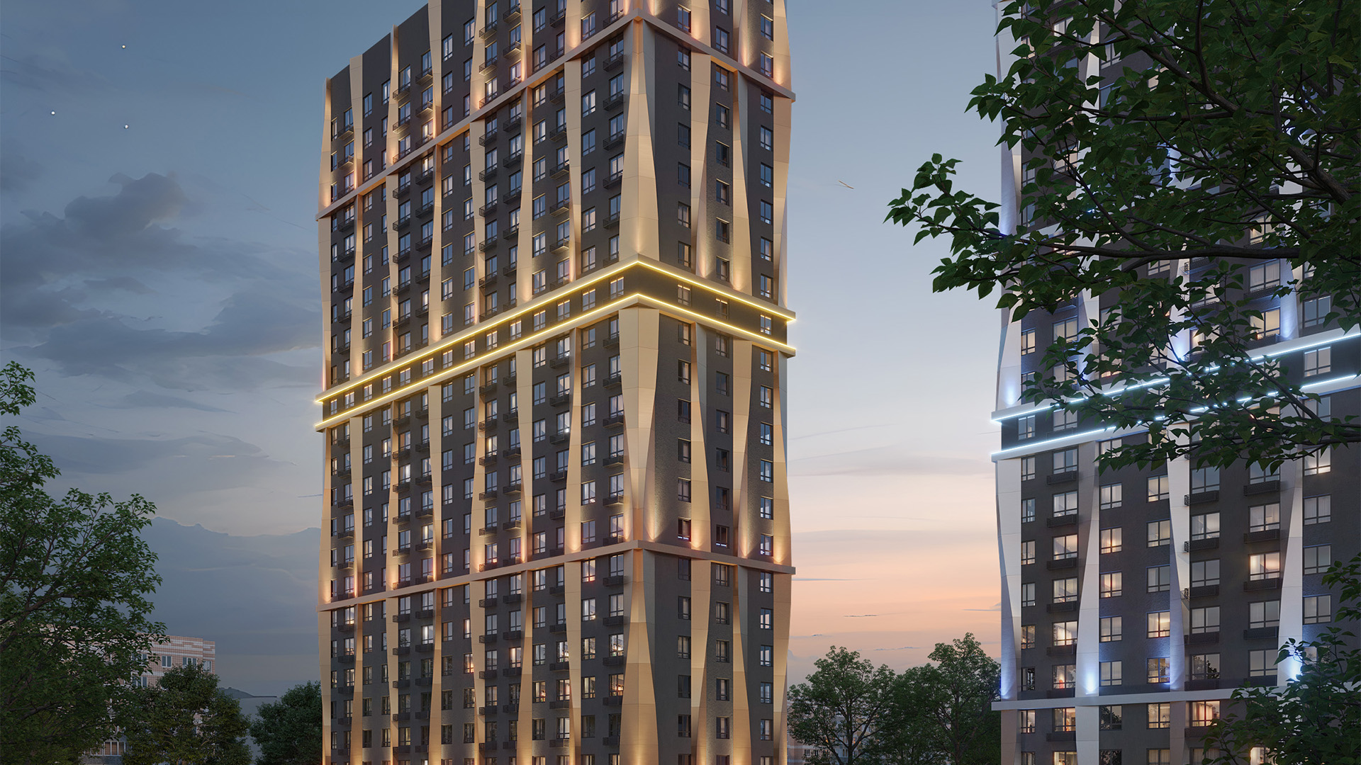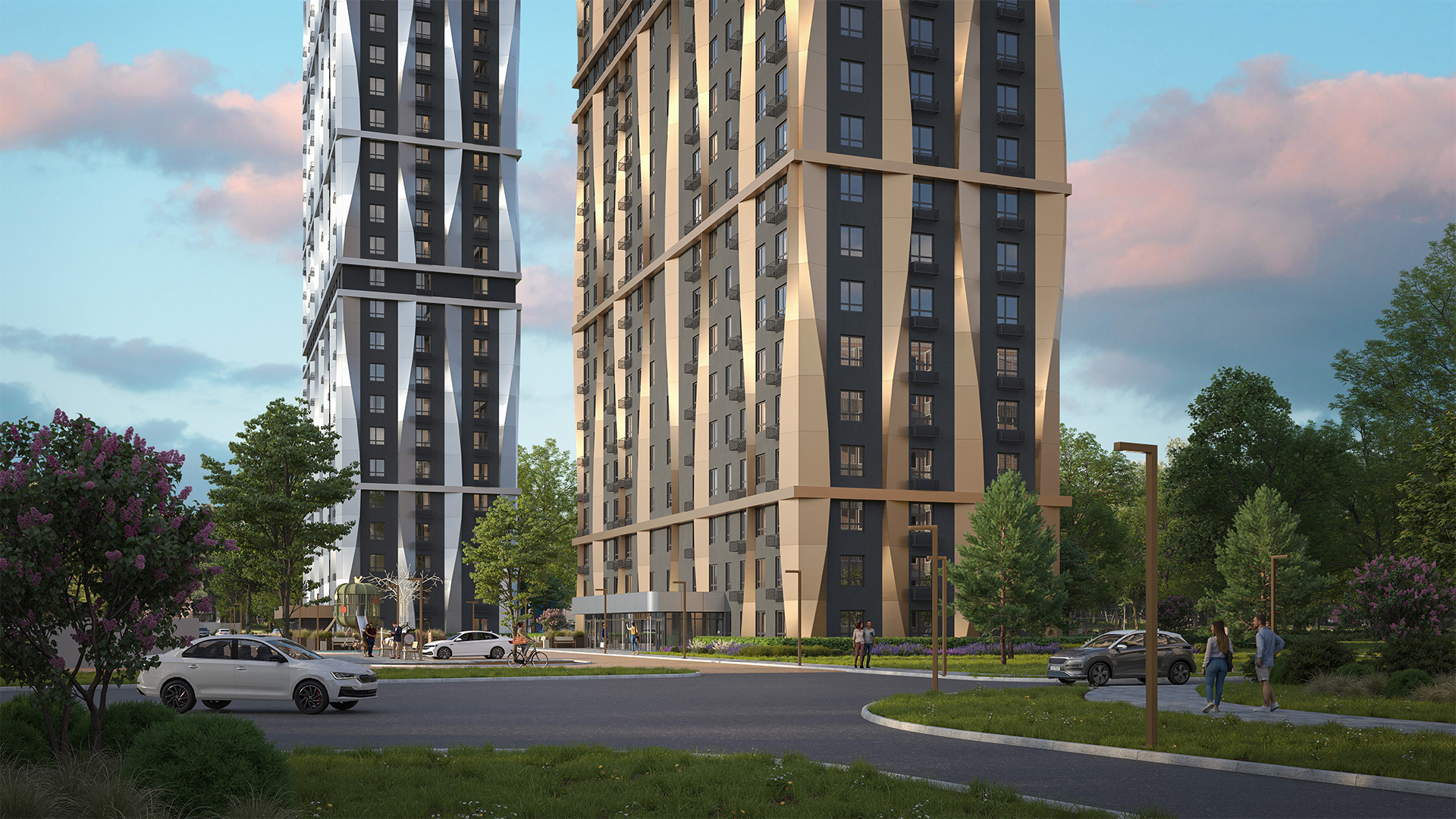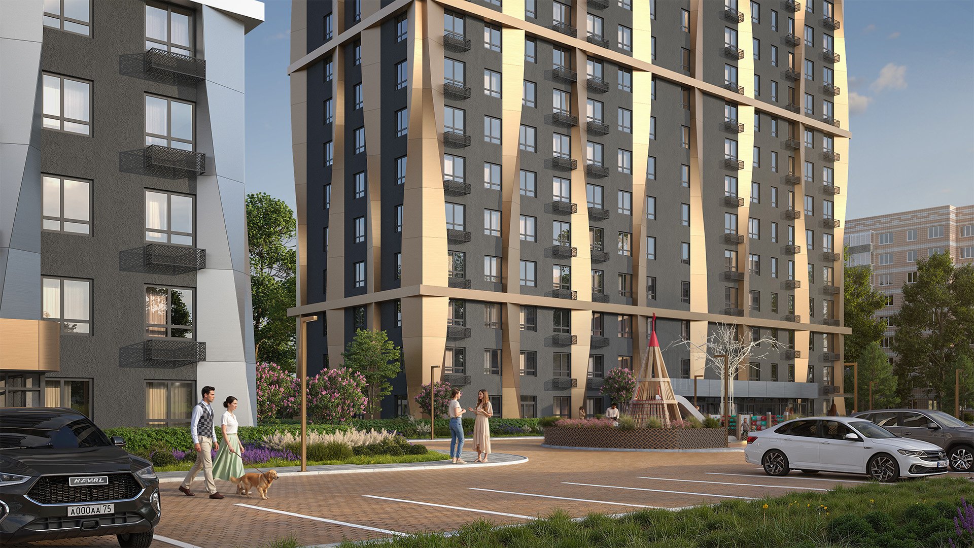 Фасад жилого комплекса «Моя мечта» сочетает современную архитектуру и энергоэффективные технологии. Декоративные алюминиевые композитные панели придают дому стильный и аккуратный облик, который сохраняет свою привлекательность на долгие годы.