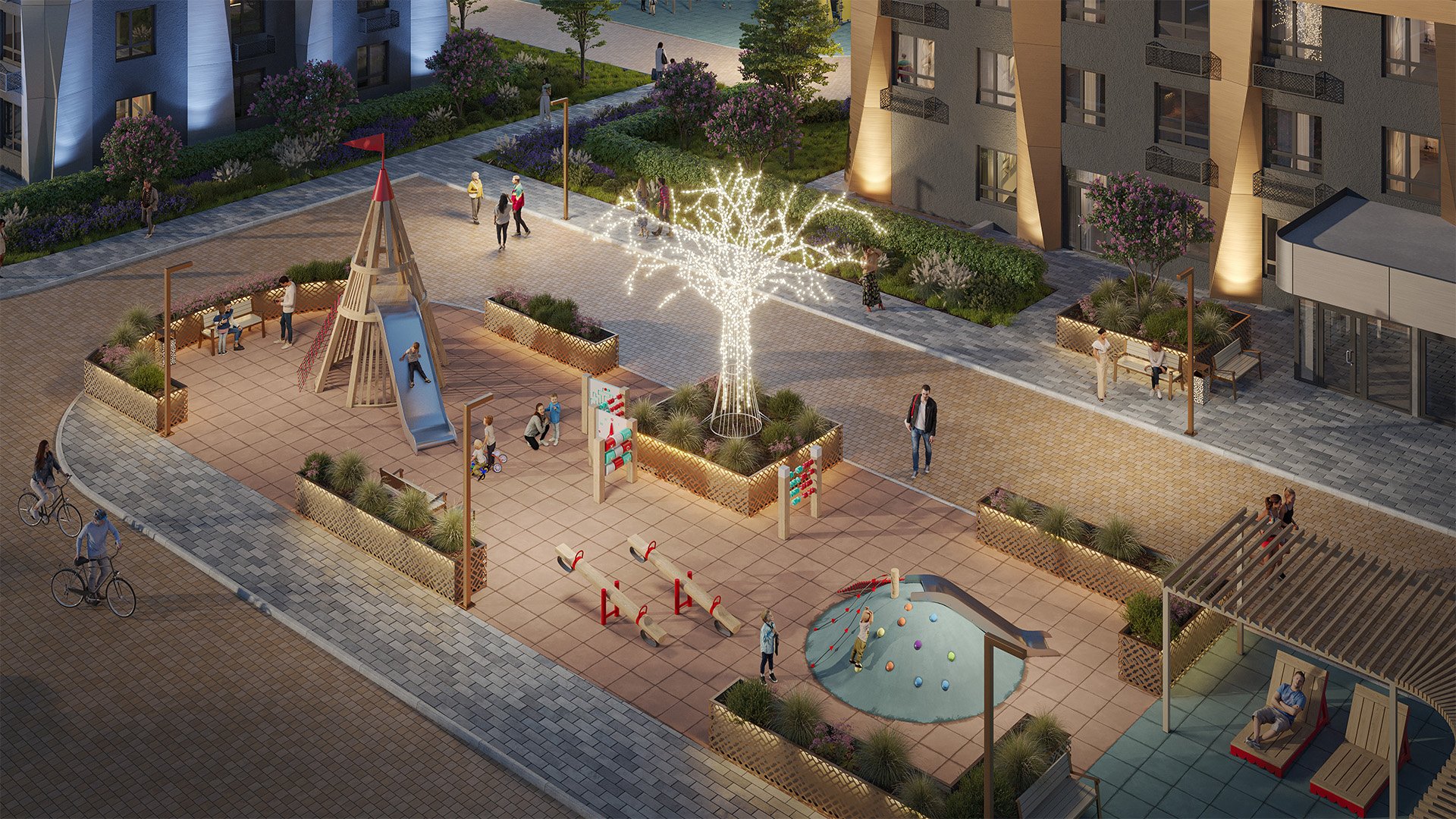 Для родителей инновационный двор — это комфорт, спокойствие и уверенность в лучшем будущем для своего малыша. После игр ребята могут покачаться на качелях, попробовать нейротренажеры, которые развивают координацию и внимание.