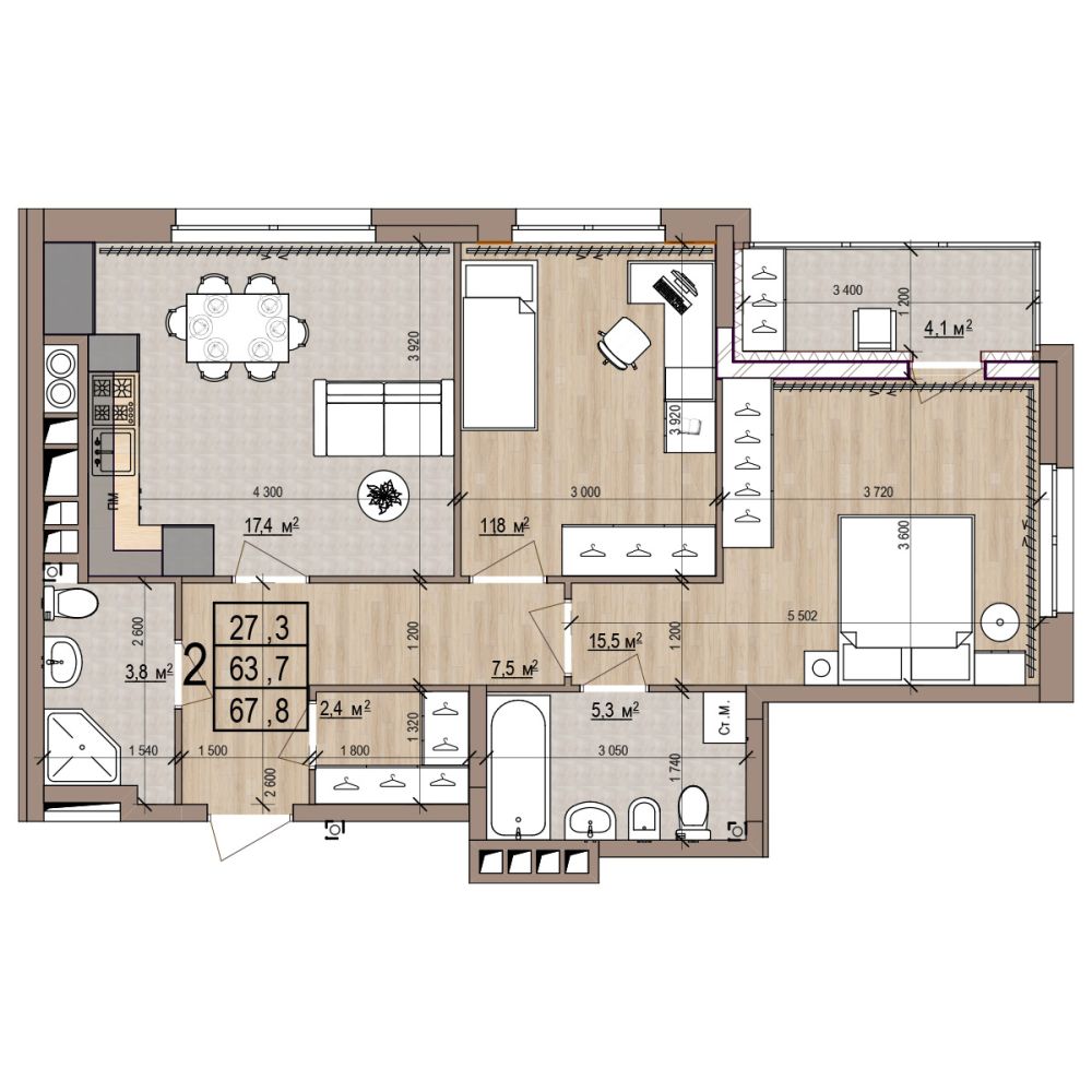 2 -комнатная 67.8 м2 Уточнить стоимость