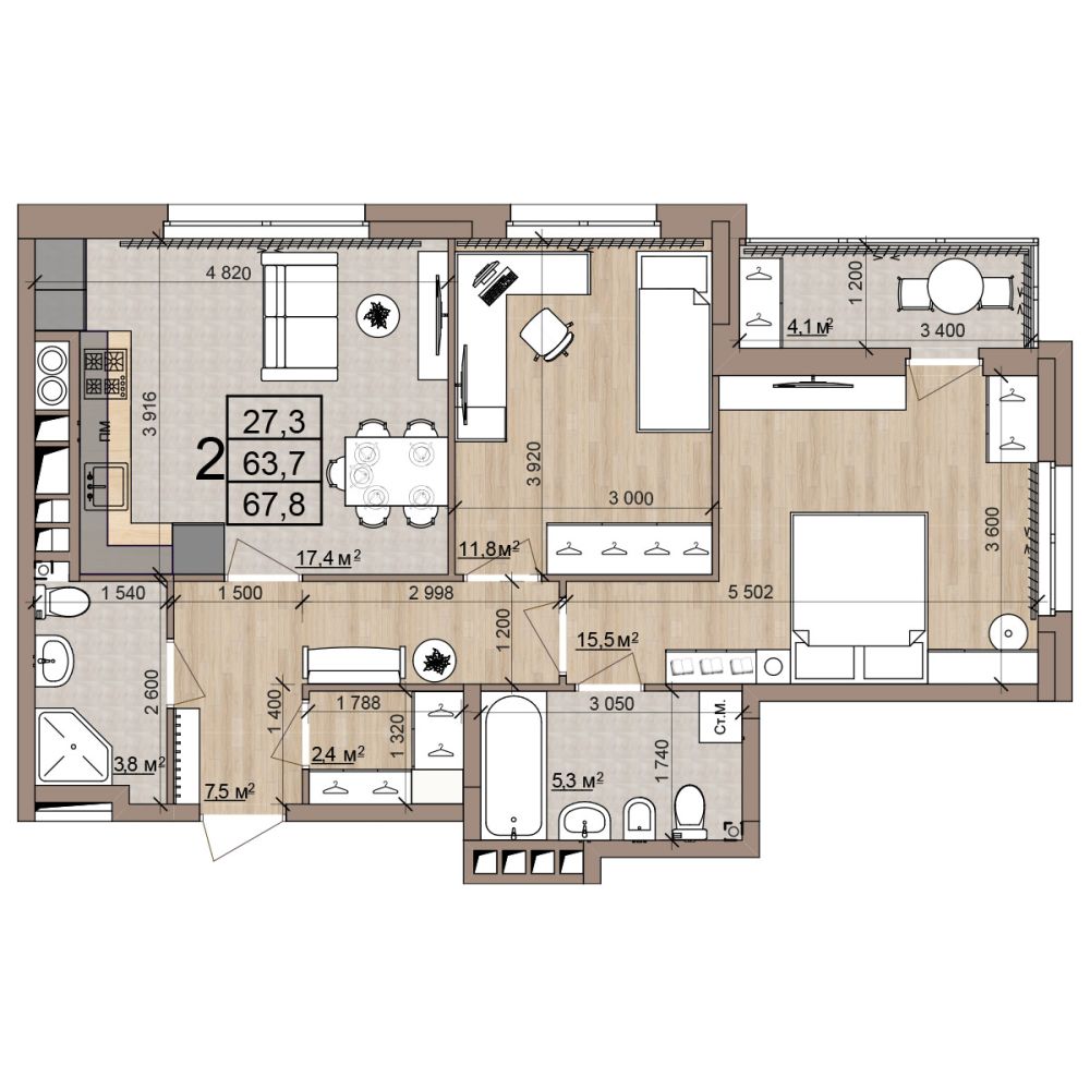 2 -комнатная 67.8 м2 Уточнить стоимость