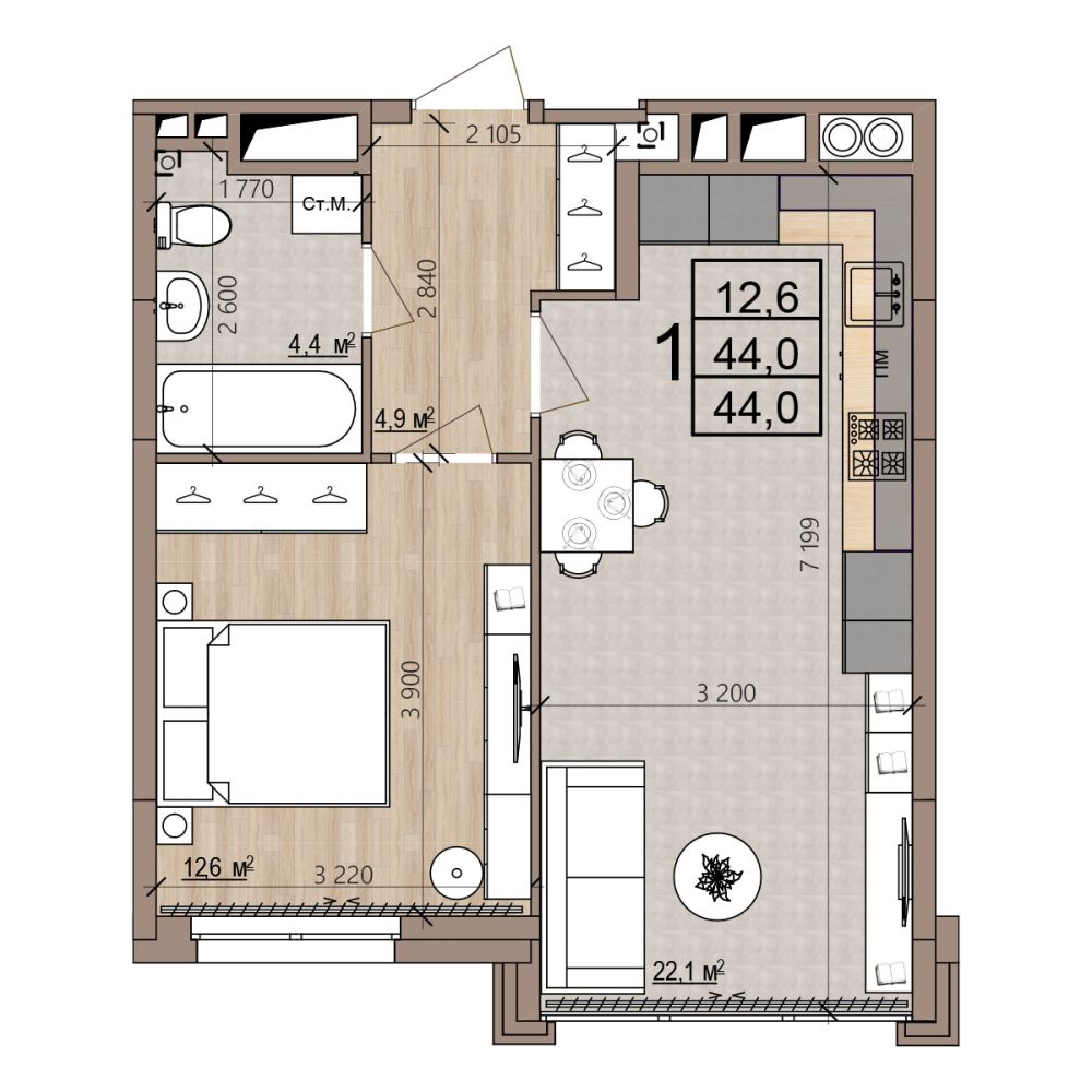 22.1 м2