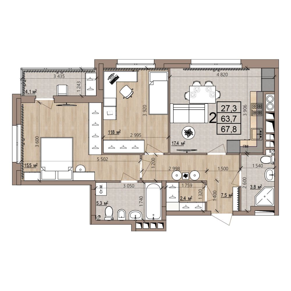 2 -комнатная 67.8 м2 Уточнить стоимость