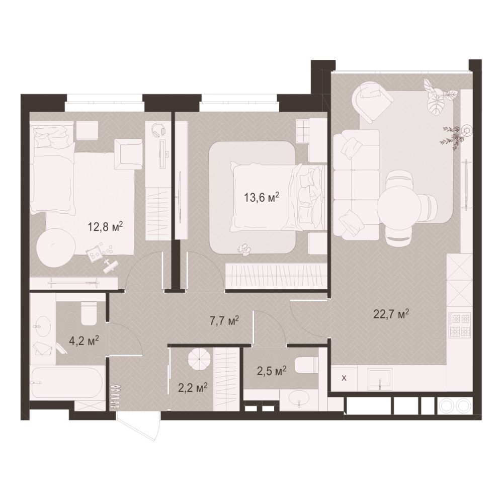 2 -комнатная 66.9 м2 Уточнить стоимость