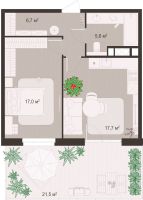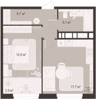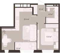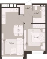 1 -комнатная 44.8 м2 Уточнить стоимость