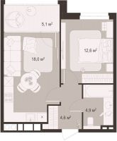 Квартира 1-комнатная 48.7 м2