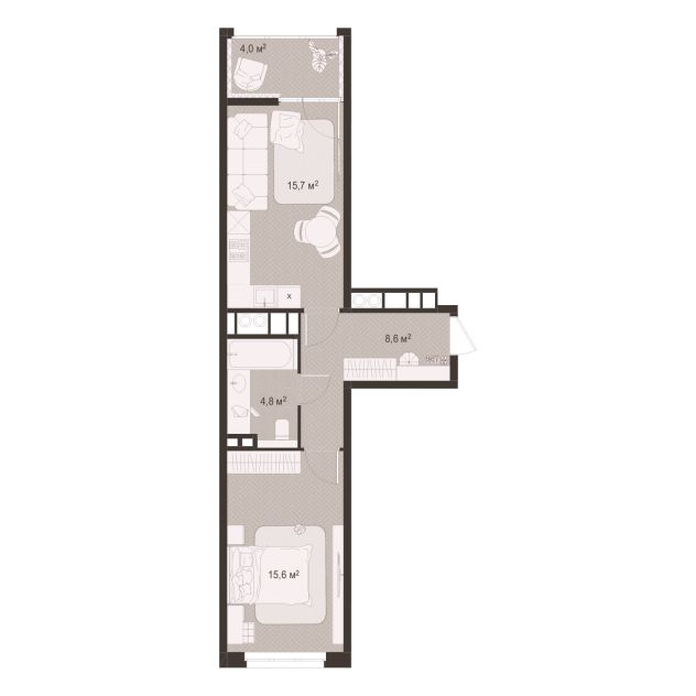 1 -комнатная 48.7 м2 Уточнить стоимость