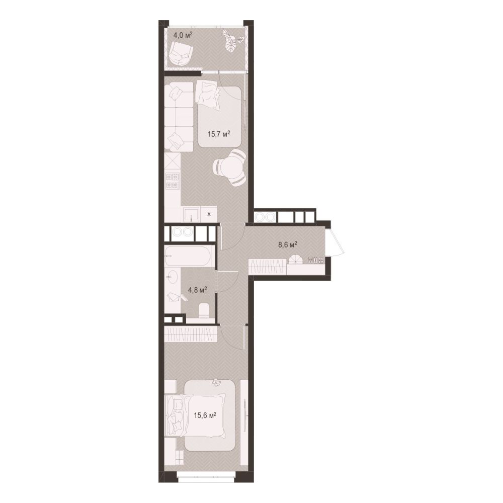 1 -комнатная 59.7 м2 Уточнить стоимость