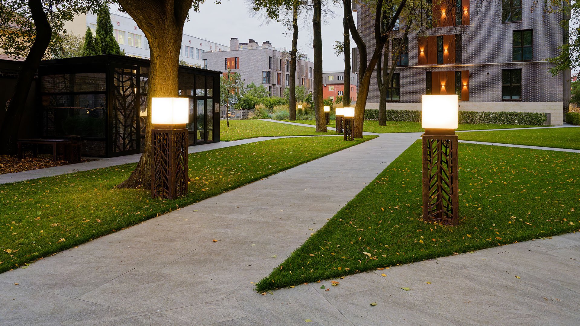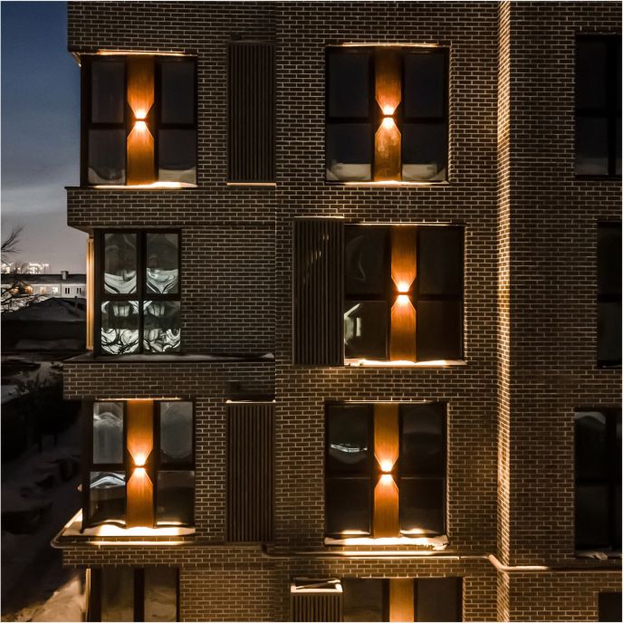 Фасадная подсветка комплекса помогает достичь эстетического эффекта и сделать нужные акценты.