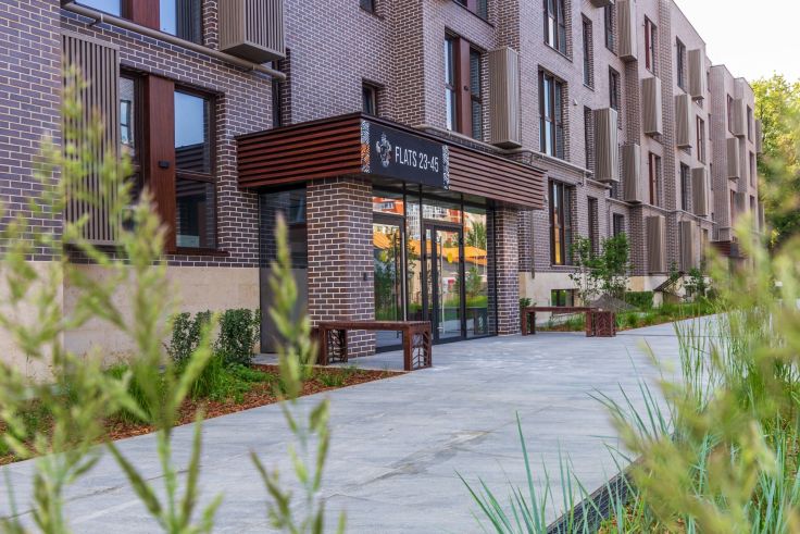 На последних этажах комплекса расположены квартиры с собственными террасами. Здесь можно обустроить сад, сделать рабочий кабинет или оборудовать зону отдыха.