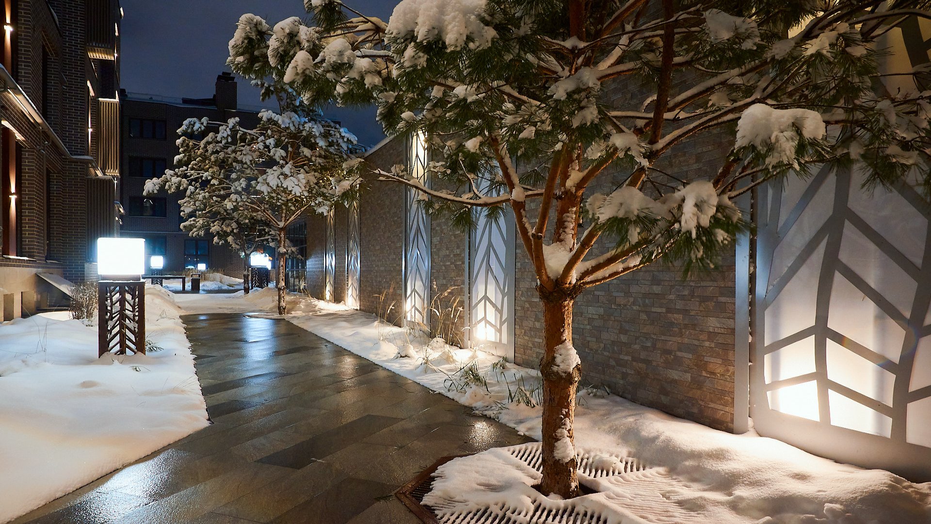 Тротуарные дорожки оборудованы системой «теплый пол». Подогрев уличной плитки и входных зон в условиях снежной и морозной зимы не позволит образовываться наледи и снежным заносам. Все осадки быстро испарятся, а дорожка останется максимально чистой и сухой.