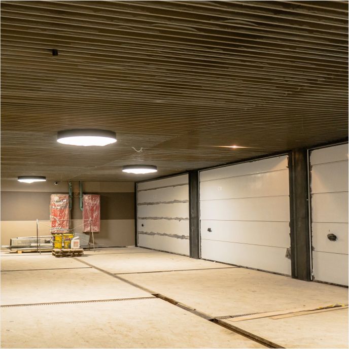 Каждый гаражный бокс оснащён автоматическими воротами, видеокамерой с предоставлением online-доступа к просмотру через смартфон. В каждом боксе установлена розетка для возможности зарядки электрокара.