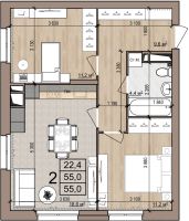 2 -комнатная 56.1 м2 Уточнить стоимость