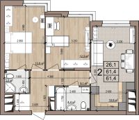 2 -комнатная 61.4 м2 Уточнить стоимость