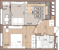 1 -комнатная 42.3 м2 4 940 500 ₽