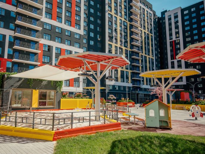 Семьи, в которых есть дети, оценят уютные и тихие улицы, а также близость разнообразных образовательных и развивающих учреждений. Рядом с жилым комплексом расположены две школы, три детских сада, многопрофильная городская поликлиника и Дворец культуры. В десяти минутах езды на автомобиле находится спортивный комплекс «Чайка» с бассейном и различными спортивными секциями. А в пятнадцатиминутной доступности расположены крупнейшие торговые центры города: ТРЦ «Премьер», «М5 Молл», METRO.