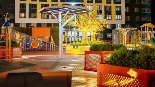 Мы предлагаем не только спортивную и детскую площадку возле дома. В ЖК Скайлайн-2 вас ждут тщательно продуманные функциональные зоны для жильцов разных поколений. Территория отличается безбарьерной средой: нет бордюров, что обеспечивает удобный доступ в любое время года, удобно и с колясками, и санками. Двор огорожен бетонными полусферами и полностью освобождён от автомобилей — это оазис для отдыха и прогулок.