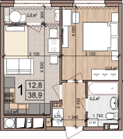 1 -комнатная 38.9 м2 5 199 000 ₽