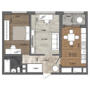 Квартира №13, 1-комнатная 38.28 м2