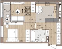 1 -комнатная 52.5 м2 Уточнить стоимость