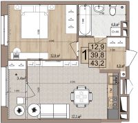 1 -комнатная 43.2 м2 Уточнить стоимость