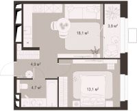 Квартира 1-комнатная 44.6 м2