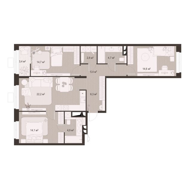 3 -комнатная 93.1 м2 Уточнить стоимость