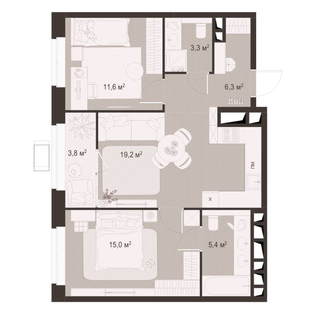 2 -комнатная 79.9 м2 Уточнить стоимость